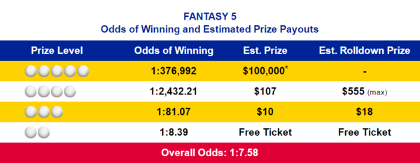 Fantasy 5 Midday Prizes and Odds