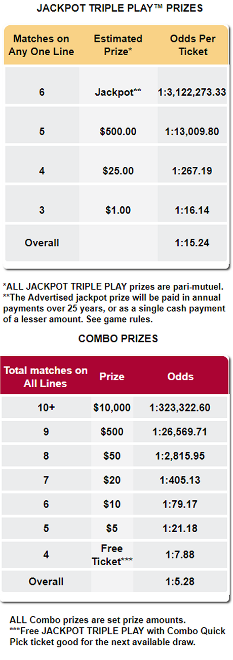 Jackpot Triple Play Prizes and Odds
