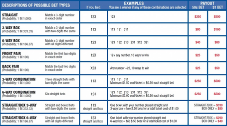 Pick 3 Midday Prizes and Odds