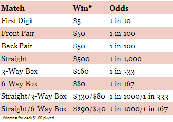 Pick 3 Prizes and Odds
