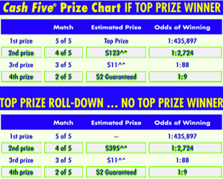 Cash Five Prizes and Odds
