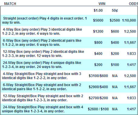 Daily 4 Prizes and Odds